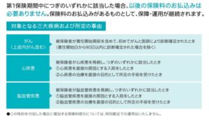 三大疾病罹患時にも保険料免除特約付加した場合、資産形成を継続することができます。