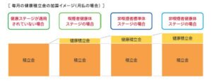 適用される「健康ステージ」に応じて、健康積立金が毎月加算されます。(健康積立金は適用される健康ステージによって異なります)
